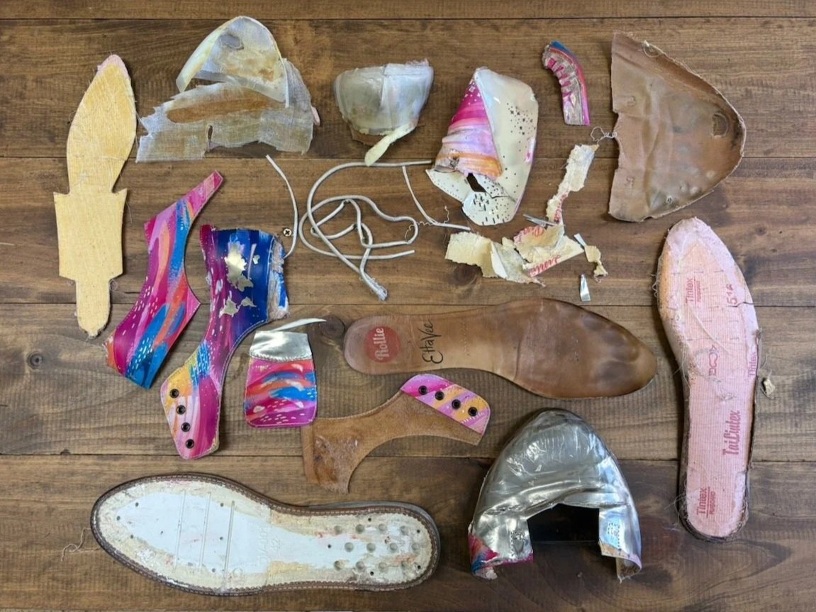 Workshop participant Jemima’s deconstructed Rollie Shoe. Alexandra Sherlock, 2026.