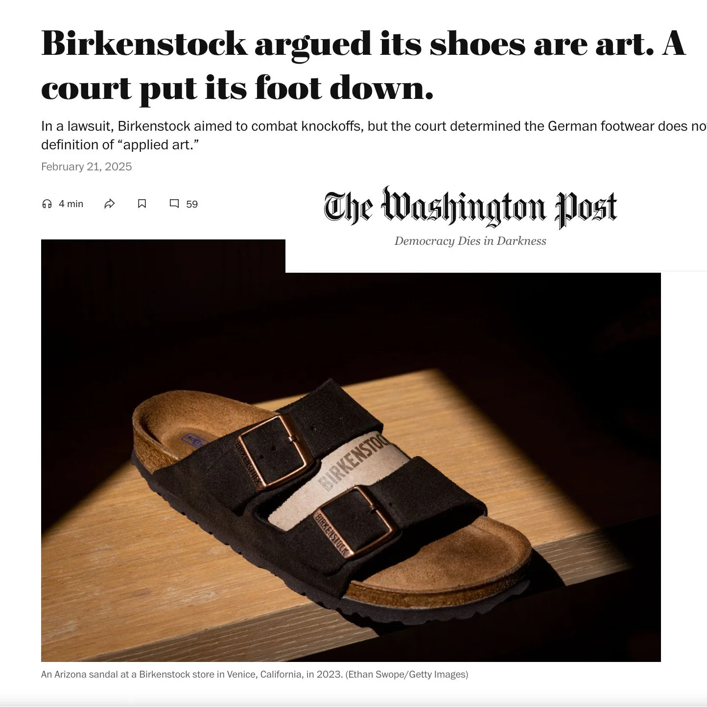 Dr. Emily Brayshaw and Dr. Alexandra Sherlock interviewed for The Washington Post: ‘Birkenstock argued its shoes are art. A court put its foot down’ - 21.02.2025