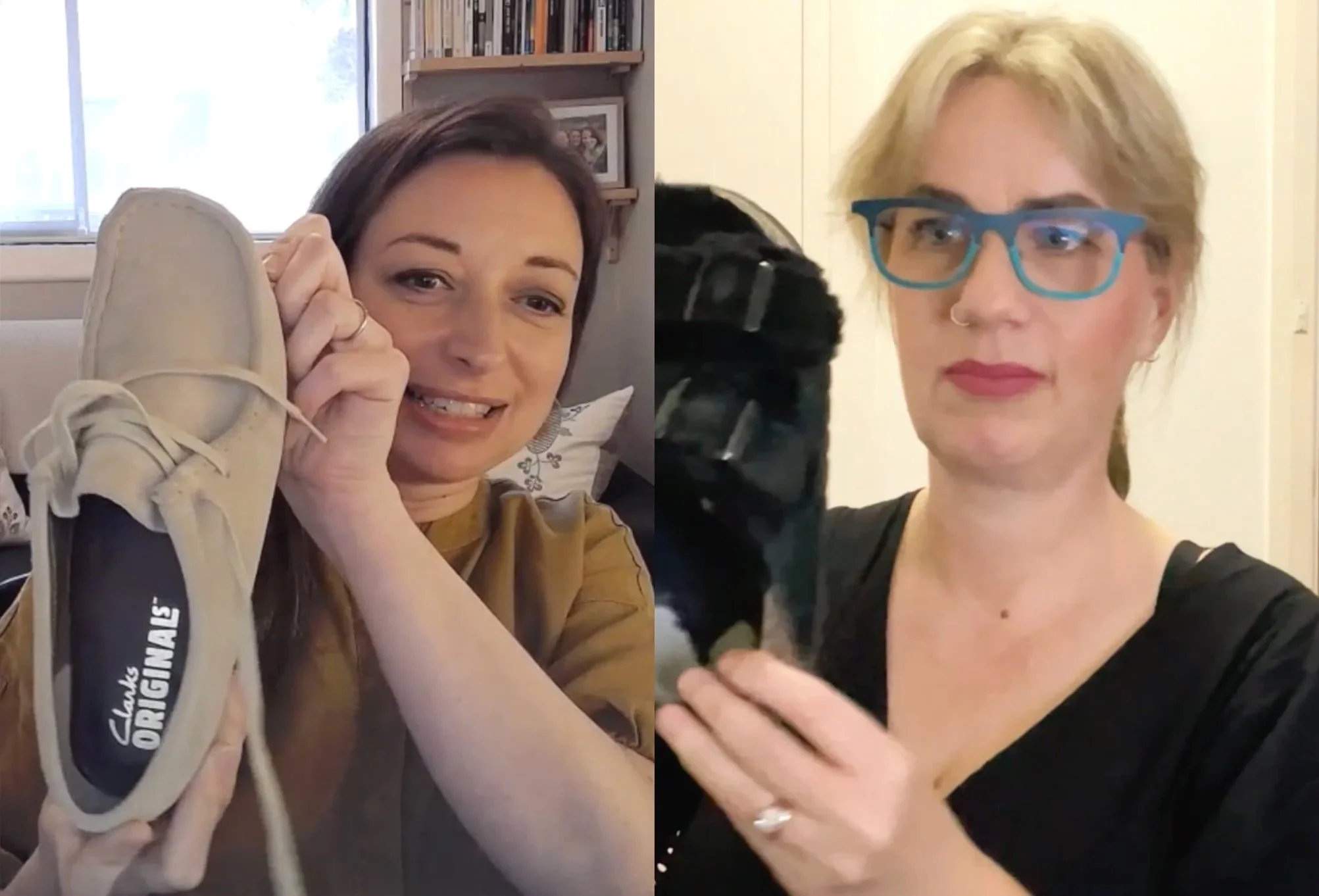 Dr. Alexandra Sherlock with her Clarks Originals Wallabies (left) and Dr. Emily Brayshaw with her Birkenstock Arizonas, 2026.